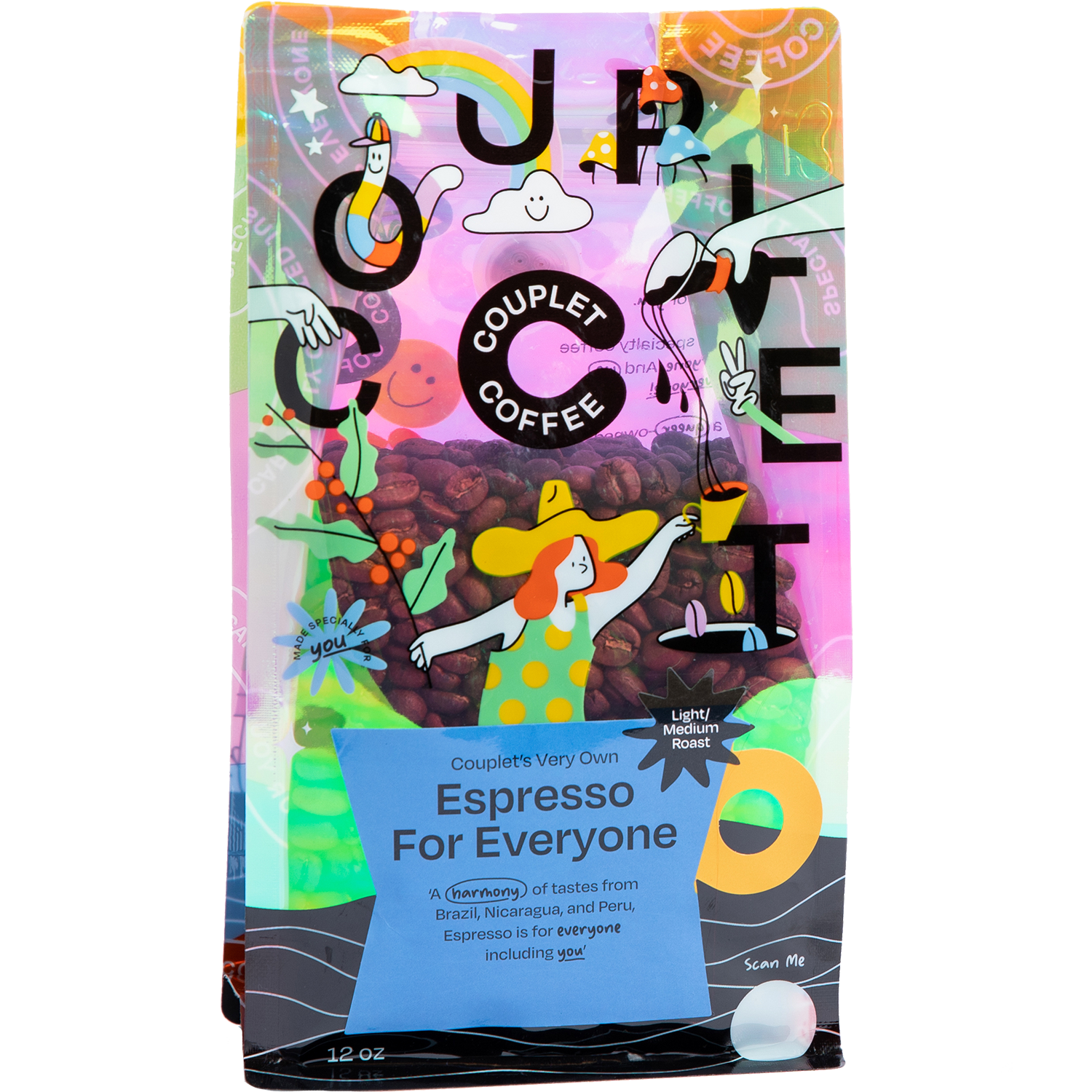 The Espresso for Everyone: a modern, crowd-pleaser type of bean. It's also our CEO's personal favorite (and she's an espresso snob)! It's a mix of our Brazilian, Nicaraguan, and Peruvian beans. It's also great in any preparation but we kept espresso extraction in mind for these beans in particular. We recommend trying it as drip as well! Roasted fresh guaranteed. Try this in our cow print moka pot! Whole beans, not ground.