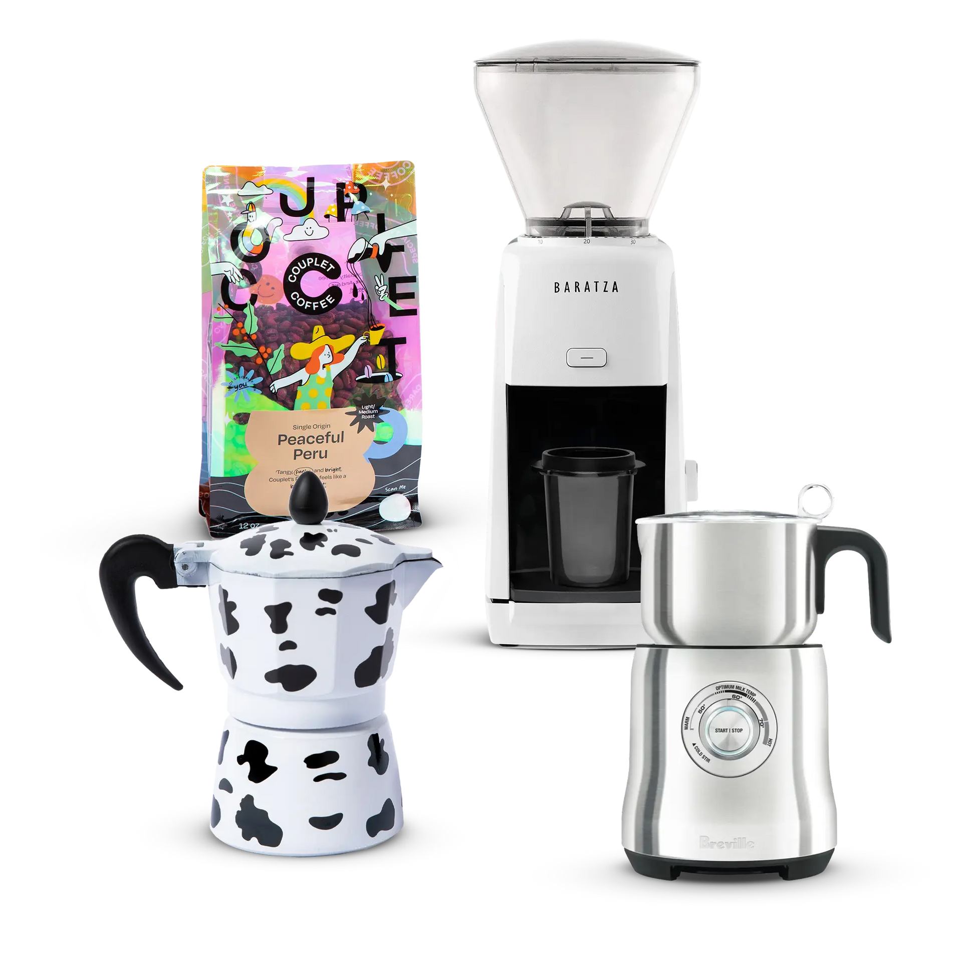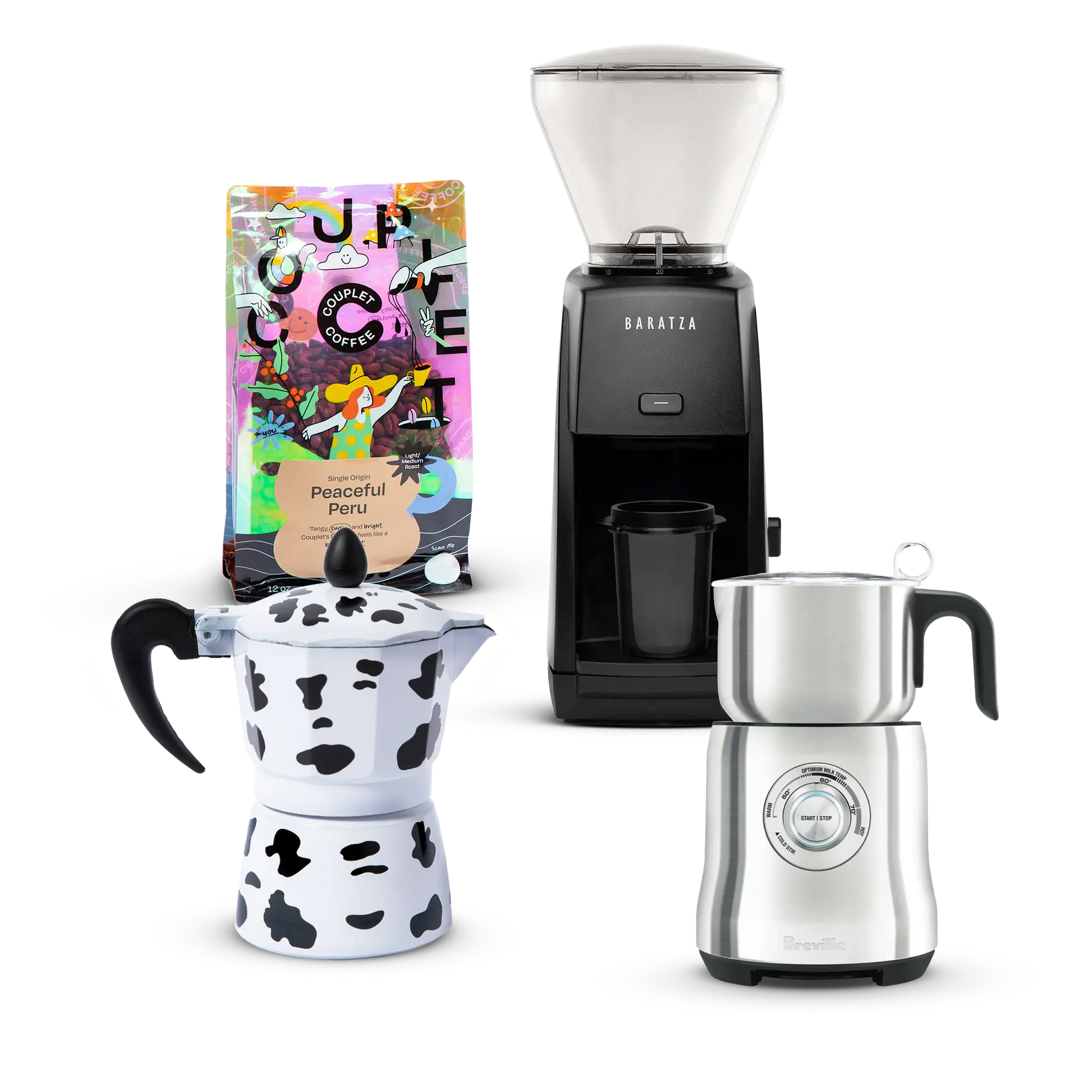Featuring the iconic Mooka pot, a frothy Café Milk Frother, and the Baratza Encore ESP grinder, this kit has everything you need for a perfect cup, day after day.